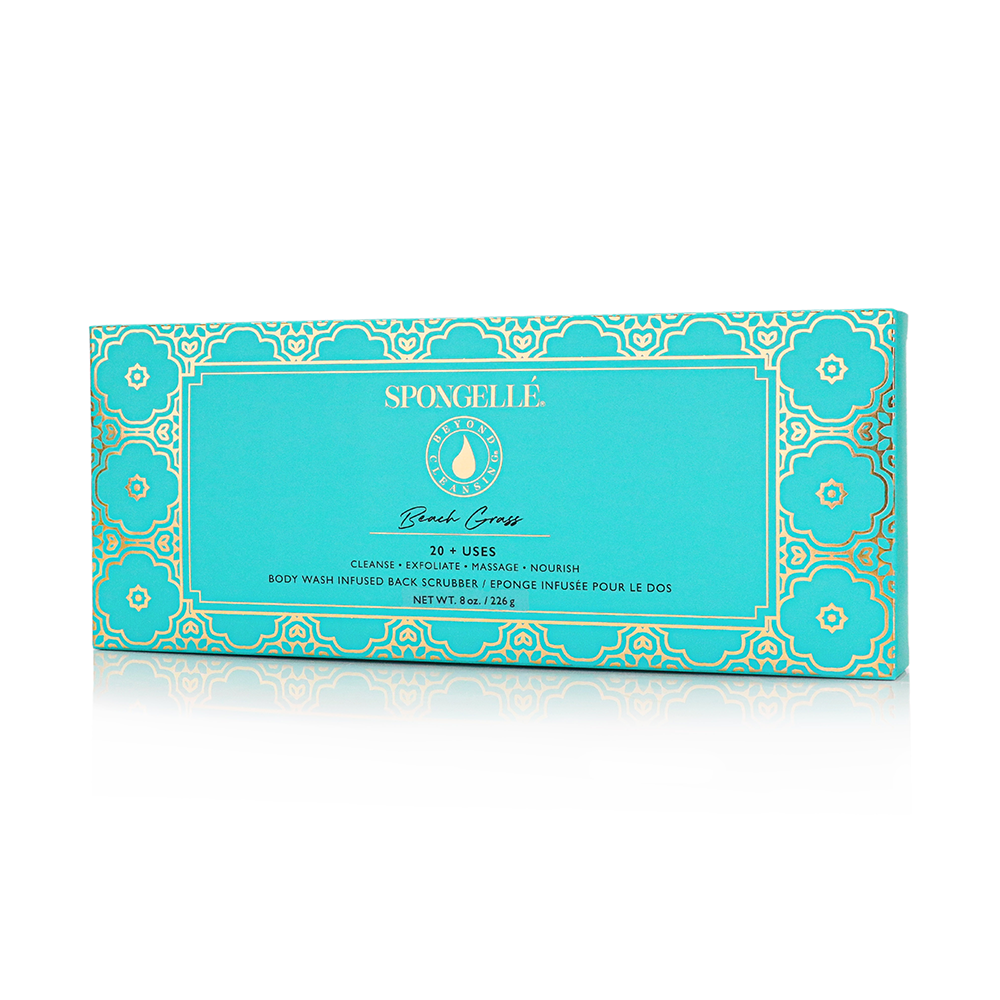 The Beach Grass Body Wash Infused Back Buffer is designed to tackle hard-to-reach areas. The extended length of this back scrubber cleanses and exfoliates with stretchable pull straps and a soft sponge design. Formulated with skin-softening natural ingredients and extracts of yuzu, edelweiss, and vetiver with aquatic, woody, and spicy notes to cleanse, exfoliate, massage and tone. Savor the relaxing scent of Beach Grass with every shower.