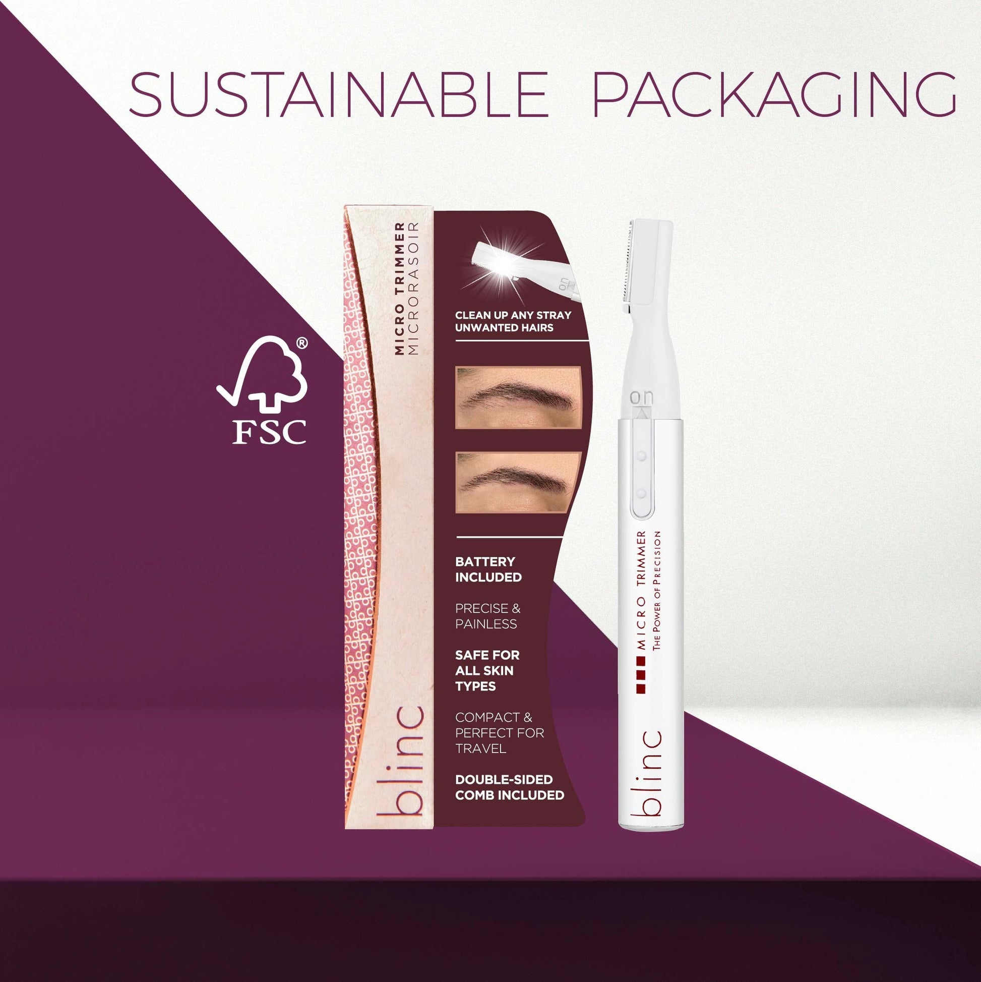 Remove unwanted hair safely, quickly and easily with the Blinc Micro Trimmer. Designed specifically to trim and shape eyebrows with extreme precision, the blinc eyebrow trimmer also contains a custom dual-sided adapter to allow for trimming at two different lengths.